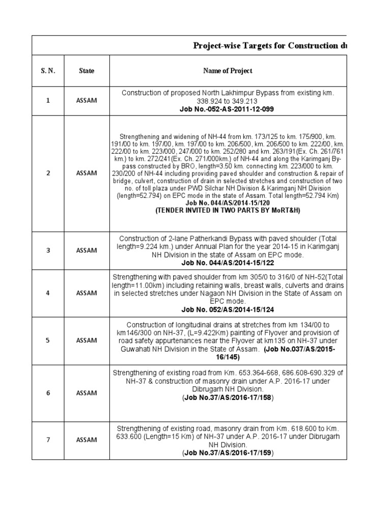 Project Wise Construction Targets 27 05 2020 Pdf Road Surface Land Transport